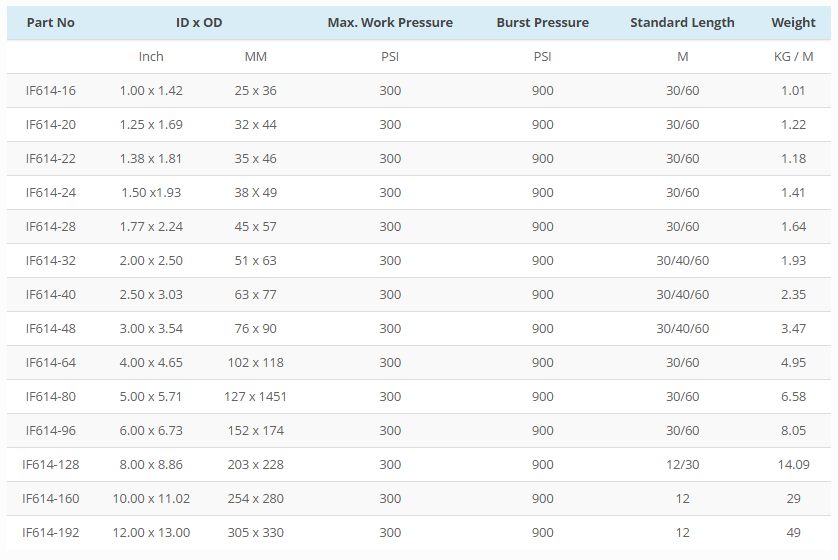 20 Bar (300 PSI) Iight weight (50% aromatics) suction and delivery of petroleum products.
